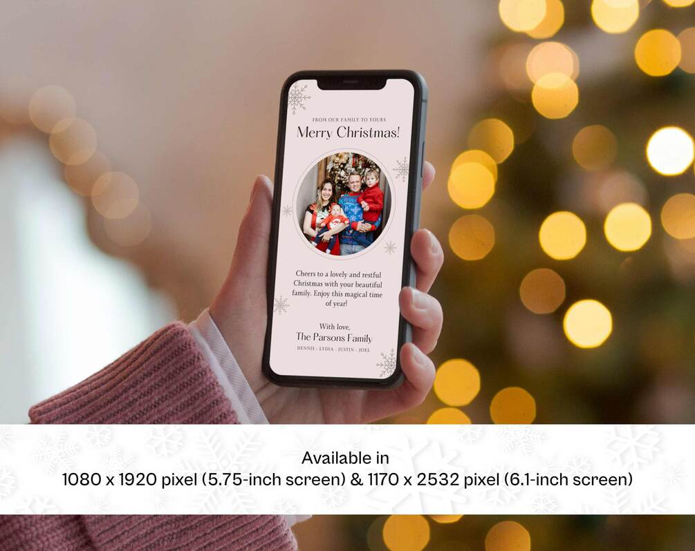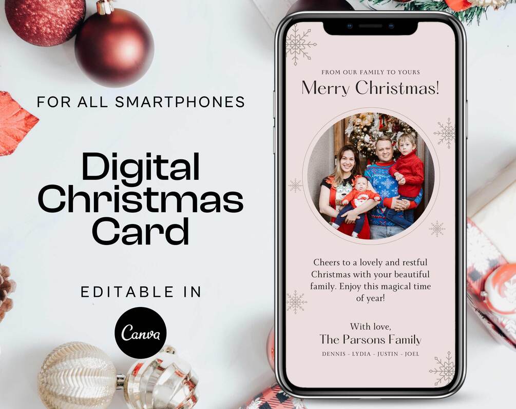 Send an elegant digital Christmas card with this minimalist editable template. With Canva applications, quickly edit your holiday messages, add photos and share the card via smartphone.